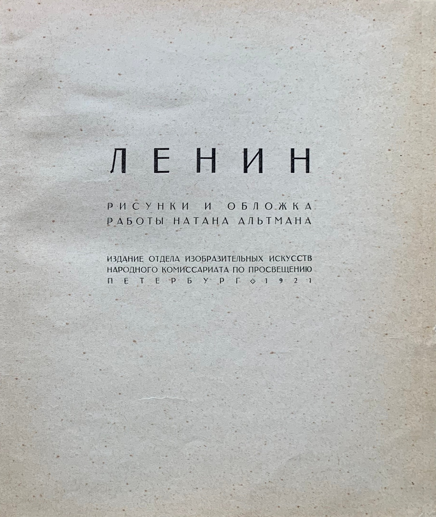 Ленин : Рисунки и обложка работы Натана Альтмана. – Пг. : Отдел ИЗО искусств Наркомпроса ; 15-я Гос. типография (Петербург, Звенигородская, 11), 1921. – 5 000 экз. – Обл., тит. (Альбом с портретами Ленина // Жизнь Искусства : [Ежедн. газета]. – Пг. : Отд. Театров и Зрелищ Комис. Нар. Просв. Союза Коммун Сев. Области, 1920 (23–24 Октября, №590–591), С.1).