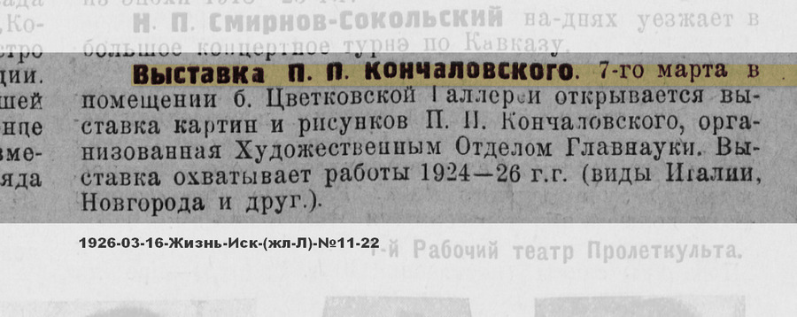 Каталог выставки картин членов Общества : Еврейское Общество Поощрения Художеств : [11 Апреля – 15 мая 1916 ; Пг., Дом богадельни им. М.А. Гинсбурга, В.О., 5 линия, №50, тел. 613-25 ; 158 №№]. – Пг. ; Тип. М. Пивоварского и Ц. Типографа (Петроград, Моховая улица, д. №8), 1916. – Обл., тит. (Вернисаж выставки Еврейского общества поощрения художеств // Вечернее Время : [Ежедн. газета]. – Пг. : Новое Время, 1916 (14 Апреля, №1447), С.4), (Закрытие выставки // День : [Ежеднев. общественно-полит. газета]. – Пг. ; Тип. «Товарищество Художественной печати» (Ивановская, 14), 1916 (16 Мая, №133), С.3).