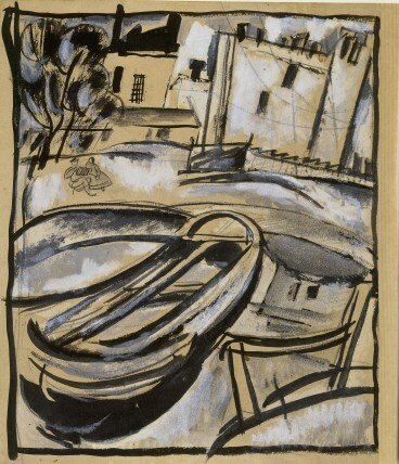 Jean Pougny. Spiaggia del Meridione. 1955. Oil on carton, 27.7 x 32.8 cm. // Auktionsverket (Stockholm), March 12, 2009, lot 115, estimate ~$50,000 // www.auktionsverket.se