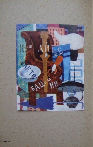 Пуни, Иван. (Петроград, Гатчинская, 1). №49. Гармоника. №50. Японский столик. №51. Портрет жены художника. №№ 52, 53, 57. Мертвая натура. №54. Игроки в карты. №55. Этажерка. №56. Стол любителей английского табаку. №58. Лампа. №59. Сапоги и стул // 1-я Футуристическая Выставка картин Трамвай В. [Петроград]. Малый зал Императорского Общества Поощрения Художеств. Каталог. [Пг.], Тип. Имп[ераторских] Т[еатров, 1915]