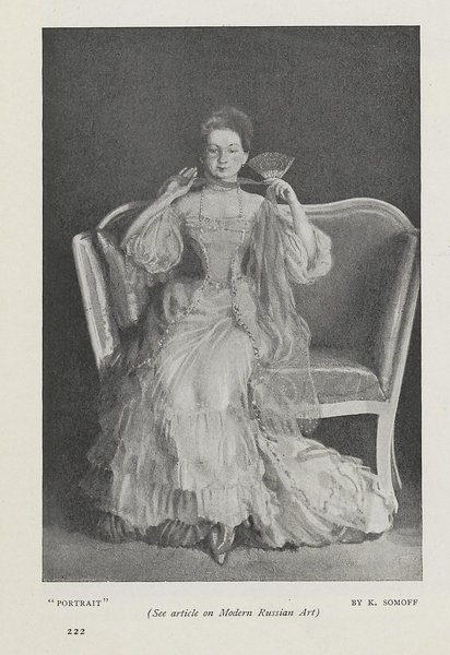 Коровин, К.А. №461. Пейзаж // Каталог «Салона» выставки живописи, графики, скульптуры и архитектуры, устроенной в 1909 году в помещении Музея и в «Меншиковских комнатах» Первого Кадетского Корпуса / Устроитель Салона: Сергей Маковский; Секретарь Салона: Л.М. Камышников; Архитектор: М.М. Успенский. – [СПб. ; типо-лит. «Якорь», 1909], С.102. – 25 коп.; Мебель на выставке исполнена в художественно-столярной мастерской Р.В. Воинова по рисункам М.М. Успенского. – Обл.: И.А. Фомин; тит.