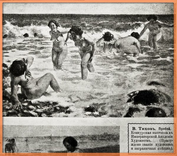 Тихов В. Прибой (Купальщицы) // Нива. Вып.5. СПб., 02 февраля 1913, с.85