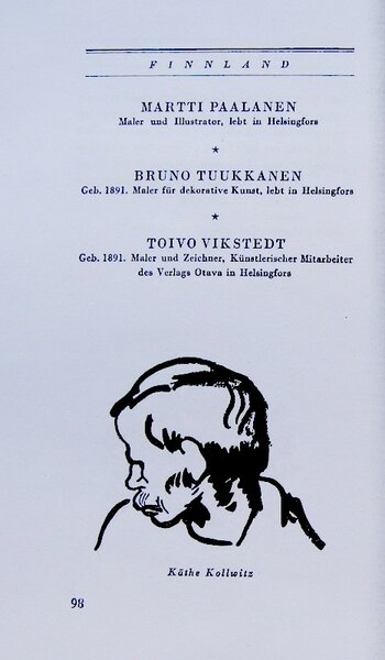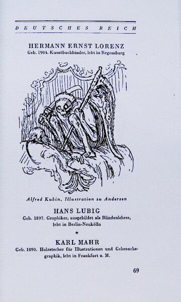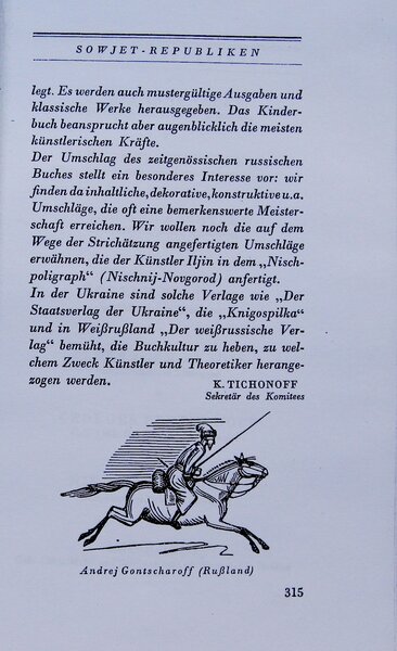 [Der 4] Internationale buchkunst austellung : Amtlicher catalog. – Leipzig : Insel-Verlag, 1927. – Umschlag, titelblatt; Ill.: Andrei Gontscharoff; D.P. Sterenberg; Wladimir Favorskij; Alexander Tychler; El Lissitzky; Jouri Pimianow; Nicolaus Piskarew; Pierre Noury; Karl Walser; Maurice Utrillo; Eugen Spiro; Marcus Collin; Th. Kittelsen; Anselmo Bucci; Zygmut Kaminski; Wladyslaw Skoczylas; Antonello Moroni; Frans Masereel; Fernand Siméon; André Lhote; Richard Seewald; Hedwig Kruse; Jan Toorop; André Dunoyer de Ségonzac; J.L. Laboureur; Jean Cocteau; E.R. Weiß; Jozef Cantré; Frans Masereel; Ludwig von Hofmann; Leopold Graf von Kalckreuth; Alfred Kubin; Emil Orlik; Käthe Kollwitz; Jules Perrichon; Raymond Thiollière; Bruno Bramanti; A. De Carolis; Fröydis Haavardsholm; Erwin Lang; Zygmunt Kaminski; Ludwig Kozma; Walter Klemm; Percy Smith; G.A. Mathéy; Liste der Künstler.