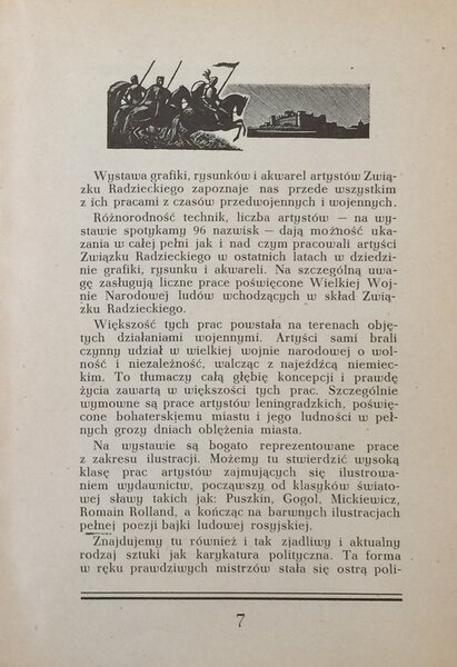 Faworskij W.A. (ur. 1886 r.). №№ 1–7 // Wystawa grafiki, akwarel i rysunków artystów Związku Radzieckiego: Lipiec 1946. – Warszawa : Muzeum Narodowe ; Drukarnia Władysławy Brasse (Warszawa, Miedziana, 8. B-08702), 1946 [Выставка графики, акварели и рисунка советских художников. – Варшава : Народный Музей, 1946]. – S.14. – G. Eczeistow. Okładka (Grażyna). Okładka (do utworow Mickiewicza); A. Krawczenko. przed tytułem (Kreml); tytuł; Ilustr.: G. Eczeistow. Winieta. Winieta. Ilustr. do Mickiewicza; A. Gonczarow. Winieta; F. Konstantinow [Konstantynow]. Mcyri (okładka do poematu M. Lermontowa). Zbrodnia i kara (ilustr. do puwiesci Dostojewskiego); Z. Kirpiczew. Oswobodzenie Wiednia (z serii); A. Krawczenko. Wij (ilustr. do puwiesci M. Gogola); Kukryniksy. Martwe dusze (ilustr. do puwiesci M. Gogola); W. Kibrik. Zaczarowana dusza(ilustr. do puwiesci R. Rollanda).