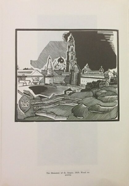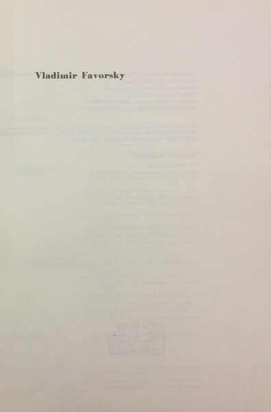 Vladimir Favorsky : [Articles and reminiscences about Favorsky : Articles, speeches, engravings, drawings etc. by Favorsky] / compil., ed.: Y. Molok; introd.: M. Alpatov; transl.: A. Pyman. – [М. : Прогресс (Москва Г-21, Зубовский бульвар, 21), 1967]. – 10 000 экз., 2 р. 75 к., 3 р. 05 к. в футляре. – Cover, title; Ill.: Self-portrait(1912). St. George (1911). Group portrait with a lay figure (1910). Portrait of the artist K. Istomin (1918). A view of Moscow from the Vorobyovy Hills (1918). Puppet for the production of «David and Goliath» at the First Children’s Theatre, Moscow (1918). The Monastery of St. Sergius (1919). Still life whith a mask of Pushkin(1930). Portrait of Nikita Favorsky (1927). Window in O. Favorskaya’s room (1932). Cartoon for the sgraffito in the House of Models (1935). Masha in an armchair (1942). Tatiana Kozulina and Tamara Eiges (1938). Yelena Rodionova and Sophia Rodionova (1946). Samarkand. Speaking of gunpowder (1942). G. Zakharov and I. Golitsyn (1961). Sonya Zelenskaya (1959).