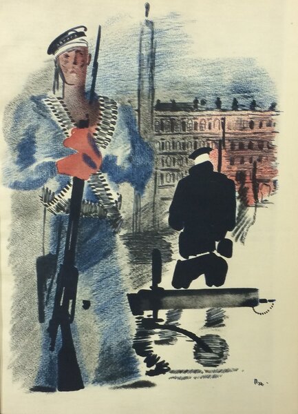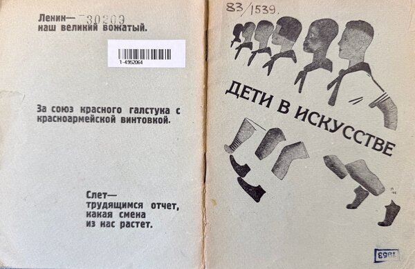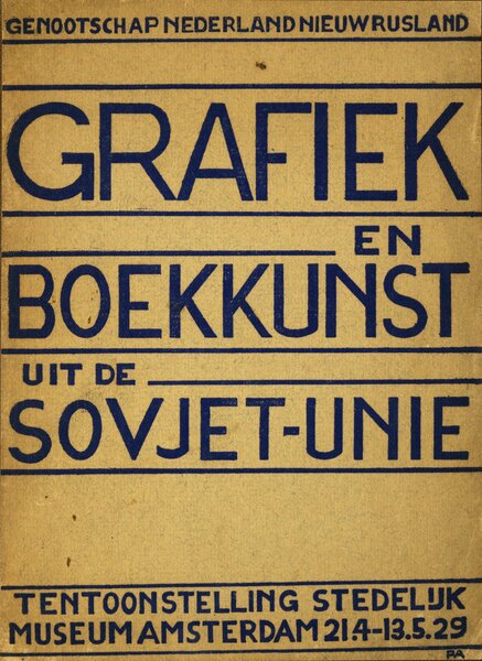 Grafiek en Boekkunst uit de Sovjet-Unie. Tentoonstelling Stedelijk Museum. Amsterdam, 21.4 – 13.5.[19]29. [Amsterdam], Genootschap Nederland Nieuwrusland (Boekomslag, Ill.: A. Dejneka. Uit «Eerste Mei», kinderboek; Demonstratie; Ssolowejtschik. Uit het album «Revolutiejaren»; J. Pimenoff. Teekening; W. Lebedew. Uit «Ijswafels», kinderboek)
