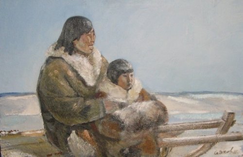 Andrei Yakovlev (b. 1934). Common Happiness, Chukotka. 1964. Oil on canvas, 94.5 x 79.5 cm. (37 3/16 x 31 5/16in) // Bonhams (London, New Bond Street), 7 Jun 2010, Russian Sale, Auction №17810, Lot 106, Sold for £1,200 inc. premium // www.bonhams.com