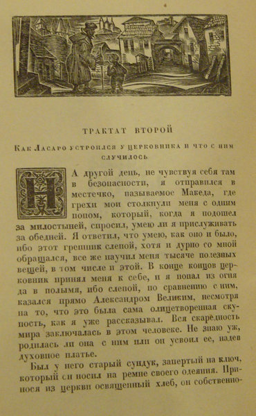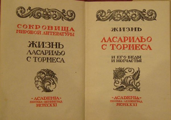 The life of Lazarillo of Tormes and his troubles and misfortunes [La Vida de Lazarillo de Tormes: y de sus Fortunas y Adversidades]. Moscow-Leningrad. Academia, MCMXXXI [1931, S. Yudovin - cover, dust cover, illustrations]