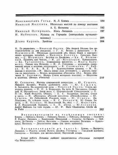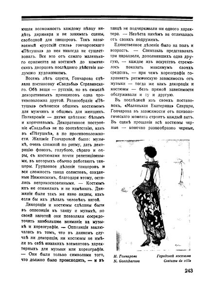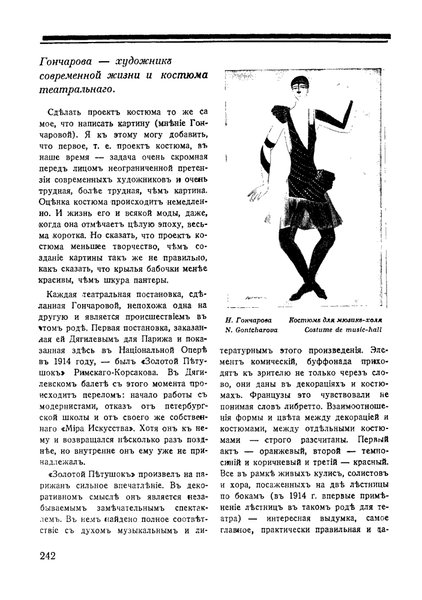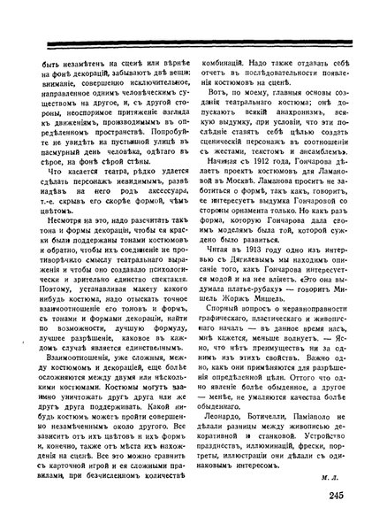 M.L. [Mikhail Larionoff?] Gontcharova is painter of modern life and theatrical costume // Tchisla. Issue 4. Paris, Cahiers de l'Etoile, 1930, p.242 – 245