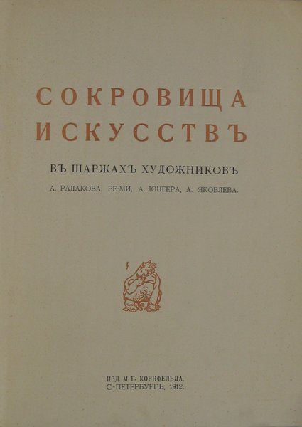 Treasures of Art in cartoons of artists A. Radakov, Re-Mi, A. Junger, A. Yakovlev. St Petersburg, Fontanka, 80, edition M.G. Kornfeld, 1912 [1913 - сover]