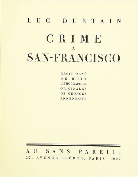 Luc Durtain. Crime a San-Francisco. R?cit orné de huit lithogrphies originales de Georges Annenkoff. Paris, Au Sans Pareil, 1927