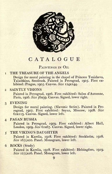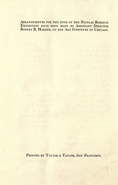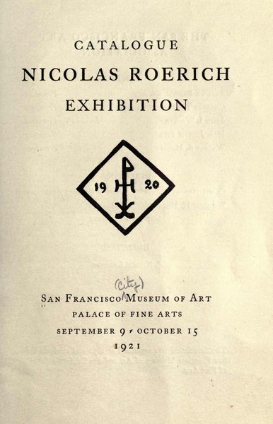 Nicolas Roerich exhibition. Catalogue. San Francisco Museum of Art, Palace of Fine Arts, September 9 - October 15, 1921. San Francisco, Taylor & Taylor, [1921]