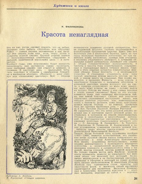N. Filimonova. Wondrously Beauty // Detskaja literatura. Issue 9. Moscow, 1969, p.31 – 34