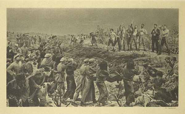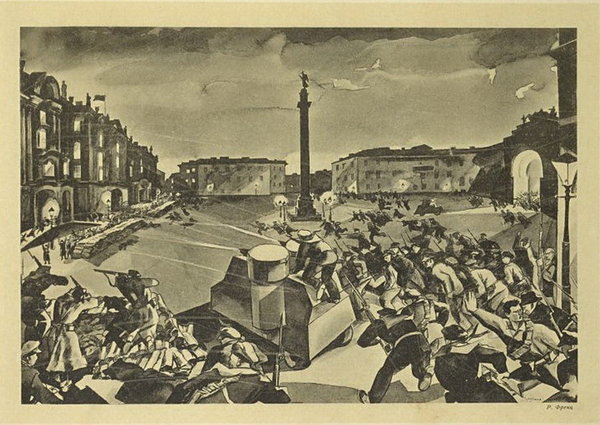 Red October and the Civil War. [Folder, 24 illustrations]. Leningrad, Obschina Hudozhnikov [Community of Artists], 1927
