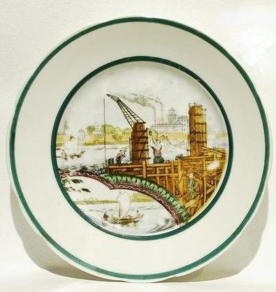 A soviet porcelain plate, Trifon Zakharovich Podrjabinnikov (1887 - 1974), Novgorod Construction Project, Dulevo Manufactory, circa 1935 // Lot#186, The Russian Auction. March 12, 2009. Stockholms Auktionsverk (Sweden) // www.auktionsverket.se