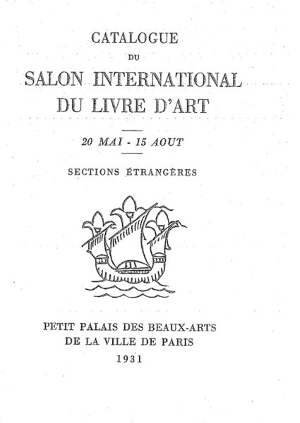 Catalogue du Salon International du Livre d'Art, Sections Étrangères. Petit Palais des Beaux-Arts de la ville de Paris, 20 mai - 15 août 1931. Préface d'André Suarès, présentation de Clément-Janin. – Paris : 1931. – 5 000 exemplaires