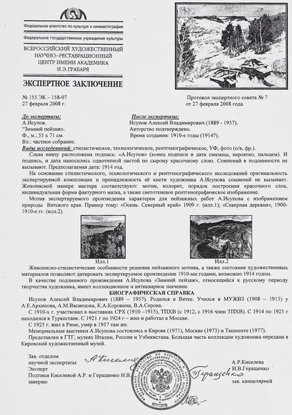 Alessio Issupoff. Winter. 1910s. Oil on plywood, 55 x 71 cm. // Expert Opinion Grabar Center (Moscow) dated February 27, 2008 (Exp.: A. Kiseljeva, Irina Geraschenko)
