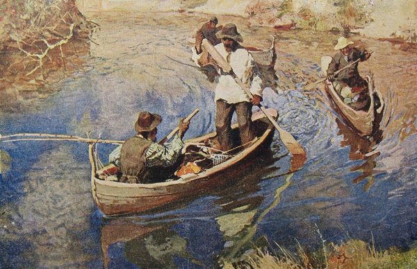 3 - 4. Ivan Kolesnikoff. Fishermen on the river Luga // Leningrad, Association of Artists of the Revolution (№121), State printery named after Ivan Fjedorov, 25 000 iss., 8 kop.