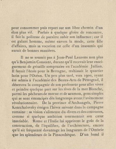 Exposition Pierre Kontchalovsky du 4 au 19 Mars 1925 de 10 à 12 h. et de 14 à 18 h. Chambre Syndicale de la Curiosité et des Beaux-Arts. 18, Rue de la Ville-l'Éveque, Téléphone: Elysées 52-57, Paris. Paris, 1925 (Préface de Monzie)