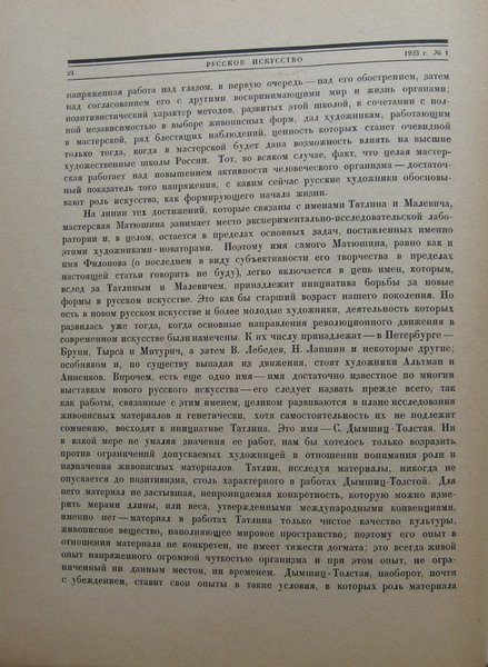N. Pounin. Review of new trends in art of Petersburg // Ruskoe Iskustvo [Russian Art]. Issue 1. Moscow-Petersburg [Petrograd], 1923, p.17 - 28